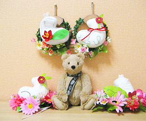 | 10cm位の白くまやうさぎのシルエットを作り、置物やリースに仕上げます。 フェルト布に型を写し、切って、縫付けていきます。 また、フェルトから花や葉っぱも作り、白くま、うさぎを自由に飾りつけましょう。 型紙や縫いは、簡単にしてありますので、ご安心ください。 |