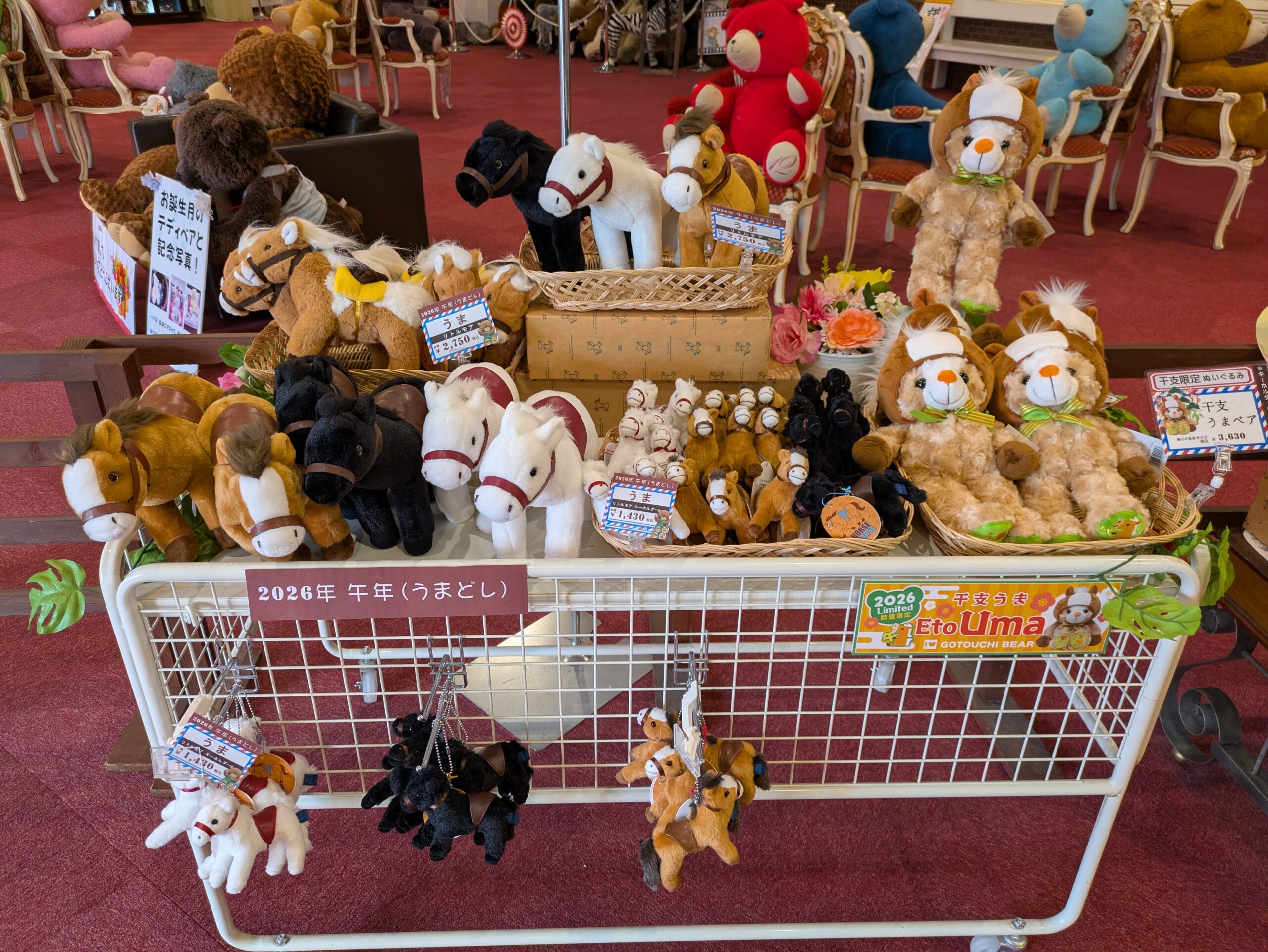 あけましておめでとうございます 投稿日時:2026/01/01 あけましておめでとうございます。 森の3つの美術館は今月はすべて開館しております。 蓼科テディベア美術館では1月1日~5日までテディベアづくり体験も開催しております。 開館時間9:30~16:30(最終受付16時) ※世界の影絵・きり絵・ガラス・オルゴール美術館と森の美術館も同様の営業時間となります。 2026年の干支のうま年のぬいぐるみ商品もでております! ご当地ベアの干支も新登場!かわいいくまさんも是非チェックしてみてくださいね! Share This Article